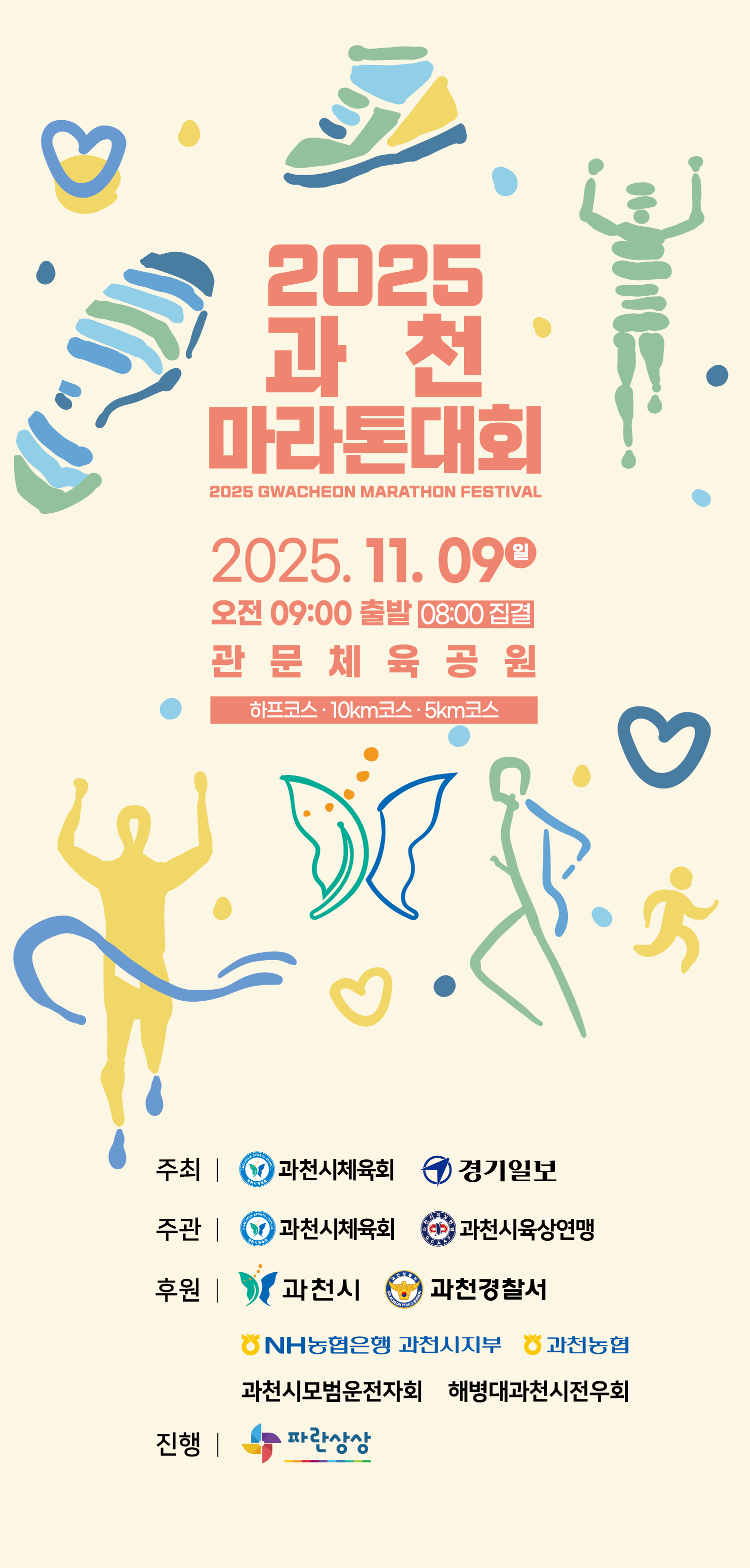 공지사항 [공지]참가자 물품 발송 안내2025-10-23 [안내] 페이스메이커 시간2025-10-01 [공지]추가 접수 마감 안내2025-09-03 [공지]추가 접수 안내2025-08-29 [공지]입금자를 찾습니다.2025-08-28
